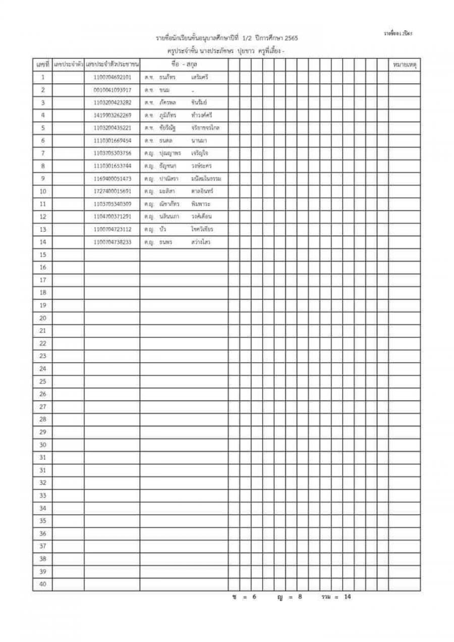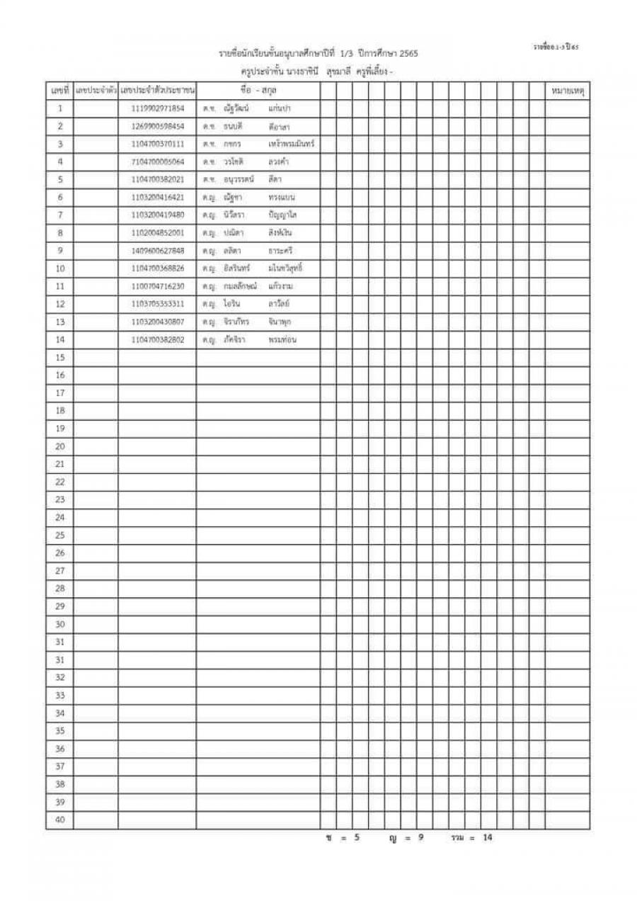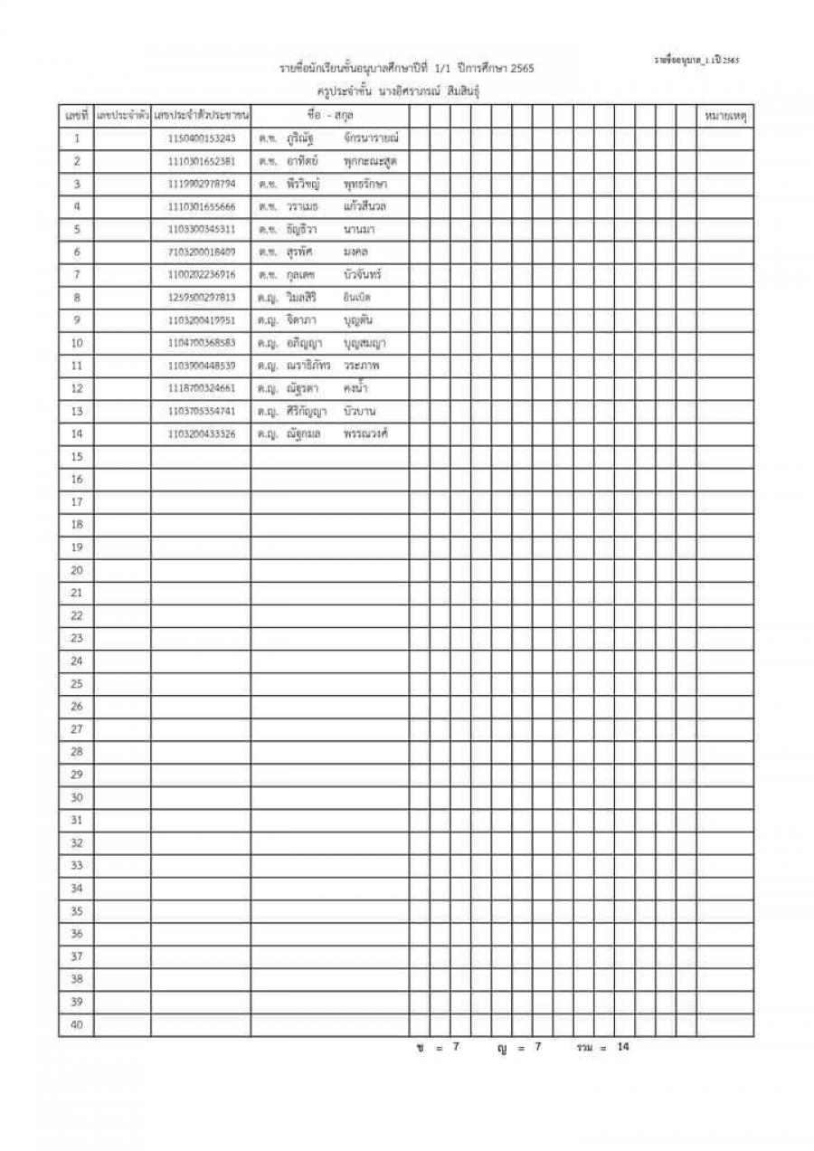 ประกาศรายชื่อนักเรียนชั้นอนุบาล 1 ปีการศึกษา 2565