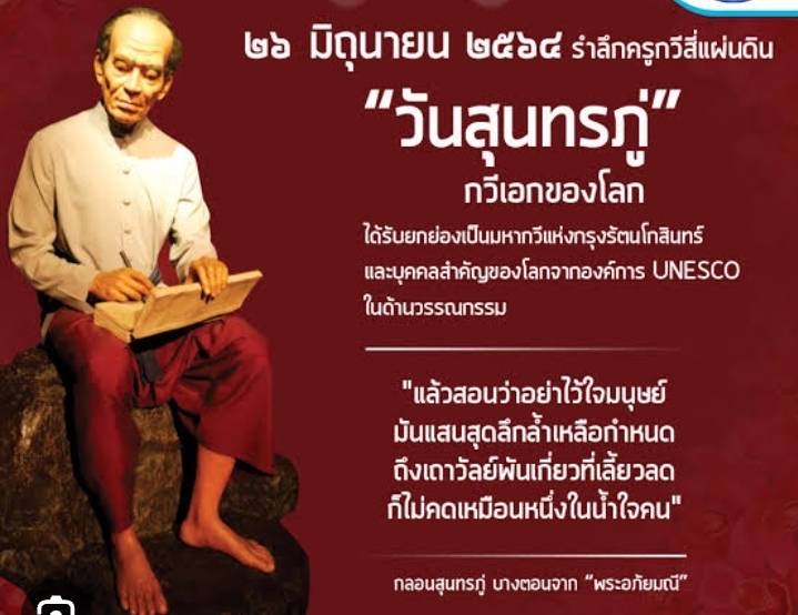 รำลึก ๒๖ มิถุนายน ของทุกปี "วันสุนทรภู่" กวีเอกแห่งกรุงรัตนโกสินทร์ ที่ได้รับการยกย่องไปทั่วโลกว่าเป็นเชกสเปียร์เมืองไทย
