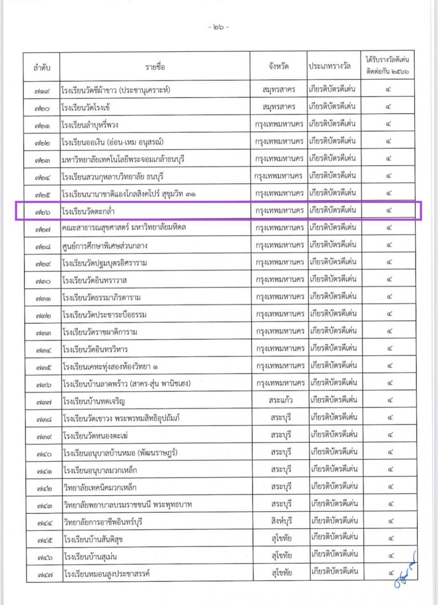 โรงเรียนวัดตะกล่ำได้รับรางวัลสถานศึกษาปลอดภัย ประจำปี 2566