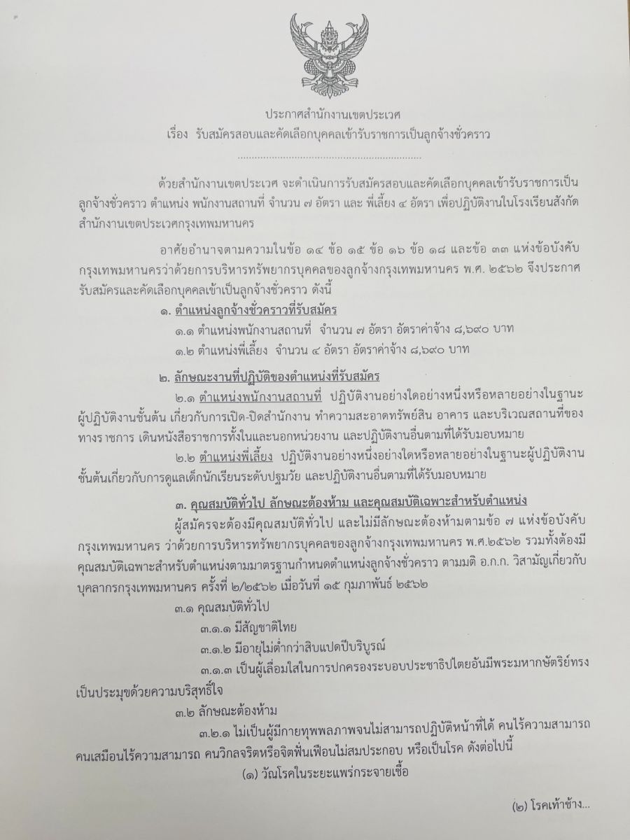 สำนักงานเขตประเวศประกาศรับสมัครสอบและคัดเลือกบุคคลเข้ารับราชการเป็นลูกจ้างชั่วคราว