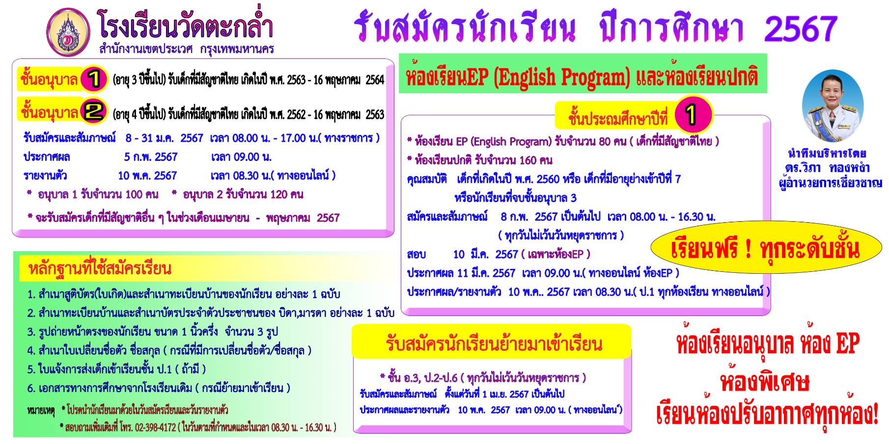 รับสมัครนักเรียนใหม่ 2567