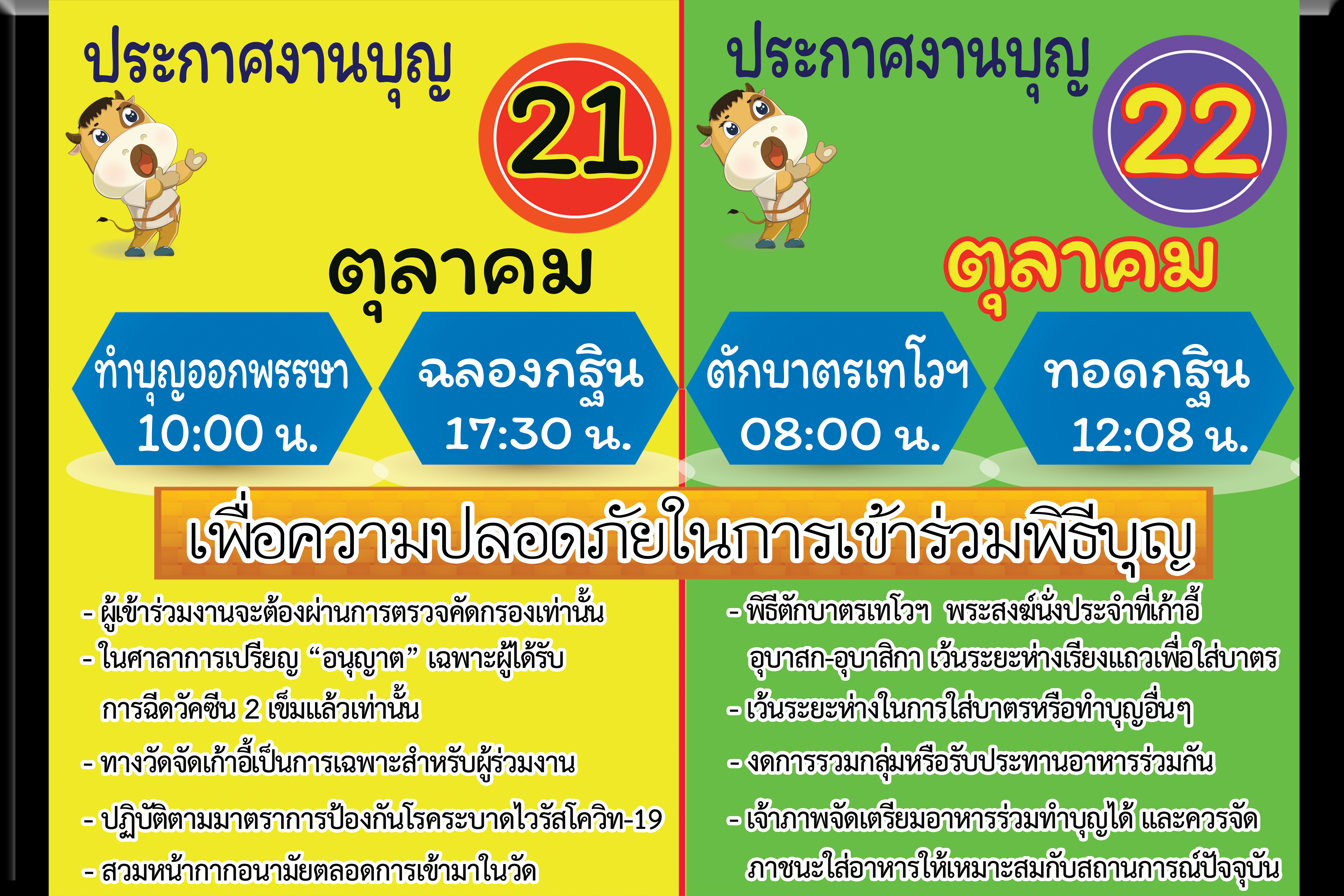 วัดตะกล่ำ จัดงานประเพณีออกพรรษา วันที่ 21-22 ต.ค. 64