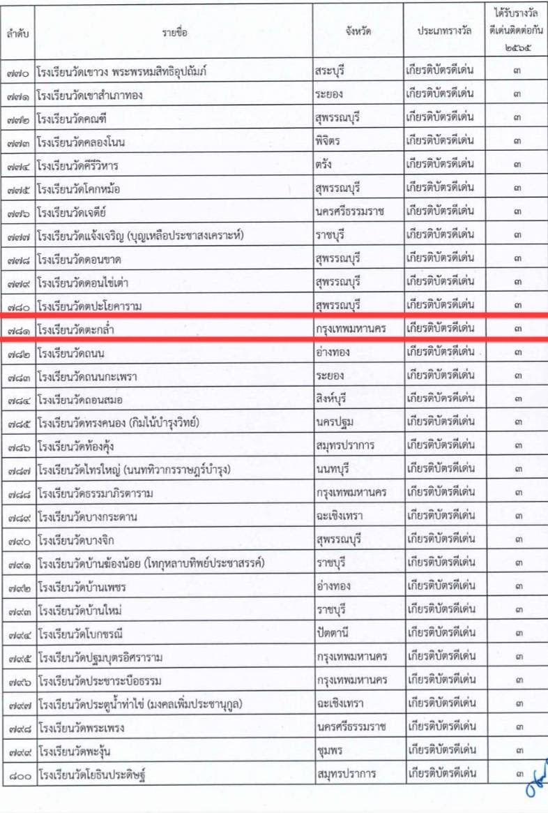 ขอแสดงความยินดีกับโรงเรียนวัดตะกล่ำ ในการรักษา ต่อยอดความปลอดภัย มุ่งมั่น พัฒนาและเดินหน้ารักษามาตรฐานกับรางวัล "สถานศึกษาปลอดภัย ประจำปี ๒๕๖๕" ต่อเนื่อง 3 ปีติดต่อกัน